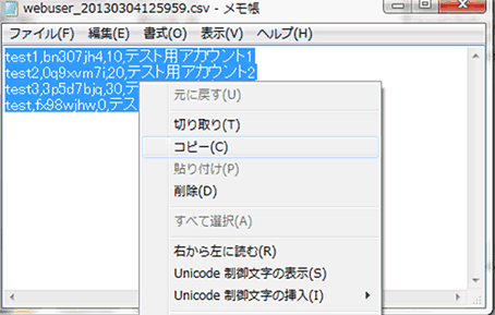 バックアップサーバーからWebユーザーのバックアップファイルをダウンロードします。対象ファイル名はwebuser_yyyymmddhhmmss.csvとなります。