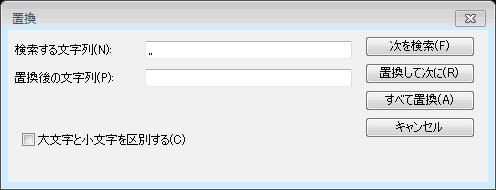 余分なカンマを削除するには、Notepadのメニュー[編集(E)]をクリックし、[置換(R)]を選択します。[置換する文字列(N)]に「,,(半角カンマ2つ)」を入力します。[置換後の文字列(P)]には何も入力せずに、[すべて置換(A)]のボタンをクリックします。