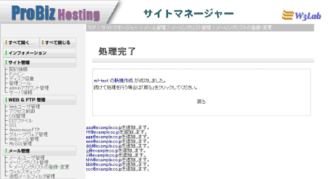 管理ツール~バックアップマネージャー WebユーザーおよびMailユーザーのバックアップデータを利用して、W3LabProBiz サイトマネージャー上でメーリングリストを再設定することができます。