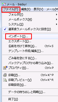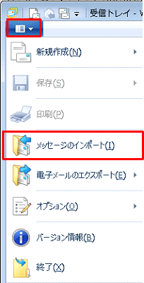 - ウインド左上のマークをクリックしてメニューを開き[メッセージのインポート]を選択する。