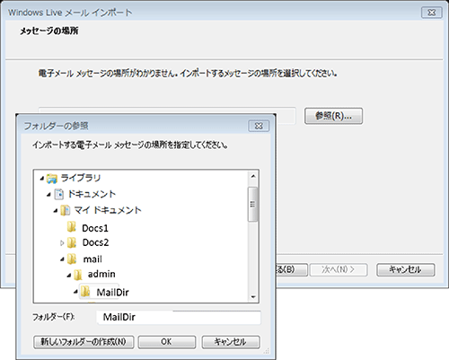 - 「Windows Liveメールインポート」ダイアログが表示されます。