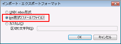 メールのバックアップデータをメールソフトで読めるように拡張子を設定します。