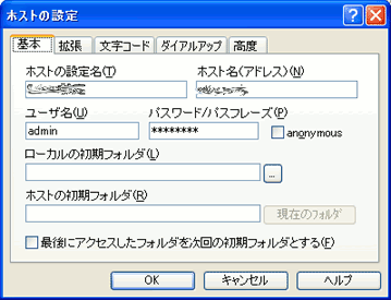 ※anonymousFTPをご利用の場合は、anonymousボックスをチェックして下さい。