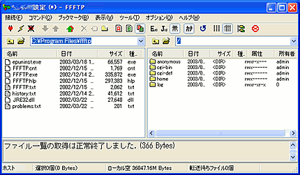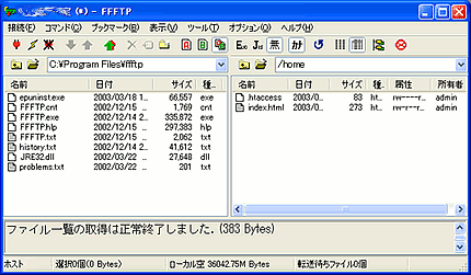 - サーバーへ接続が完了すると、画面左側にローカルフォルダ、画面右側にホストフォルダが表示されます。
