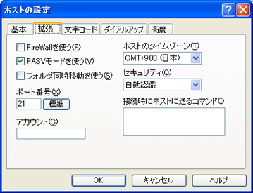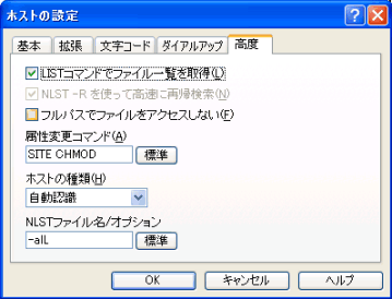・ポート番号:21その他の設定項目はデフォルトのままで構いません。設定後、「高度」のタブをクリックします。