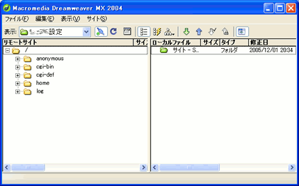 - サーバーへ接続が完了すると、画面左側にホストフォルダ、画面右側にローカルフォルダが表示されます。