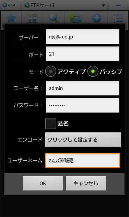 - ESファイルエクスプローラ を起動し、左上のタブから「FTP」ビューを表示させます。
