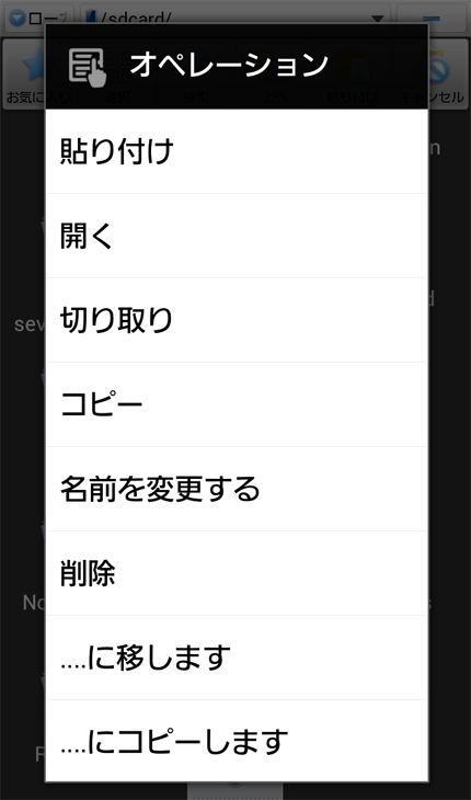 すると、「オペレーション」画面が表示されるので、「....にコピーします」を選択し、先ほど同期した接続先ディレクトリにコピーすることでアップロード可能となります。