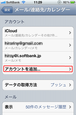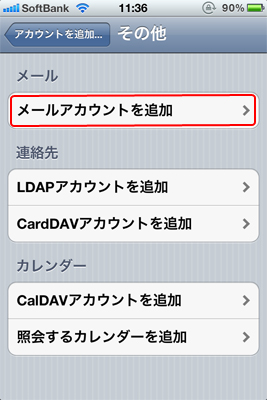 - 「メールアカウントを追加」をタップ