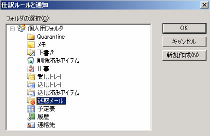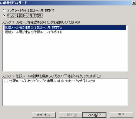 - メッセージを確認するタイミング : 受信メール用に独自の仕訳ルールを作成する